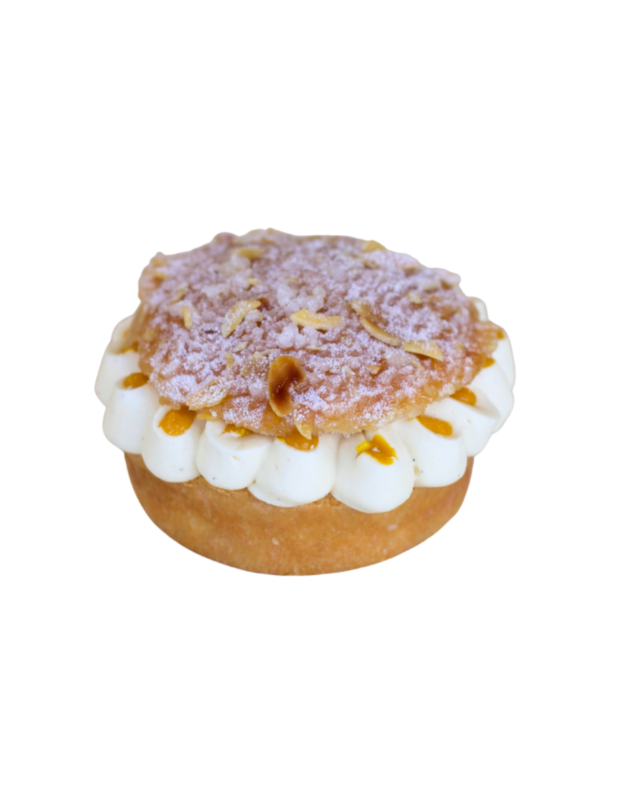 Pâte à brioche, imbibante sirop vanille, crème de vanille, confit de mangue