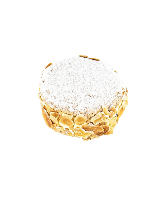 Biscuit meringué, crème à la vanille de Madagascar avec éclats de nougatine, amandes torréfiées