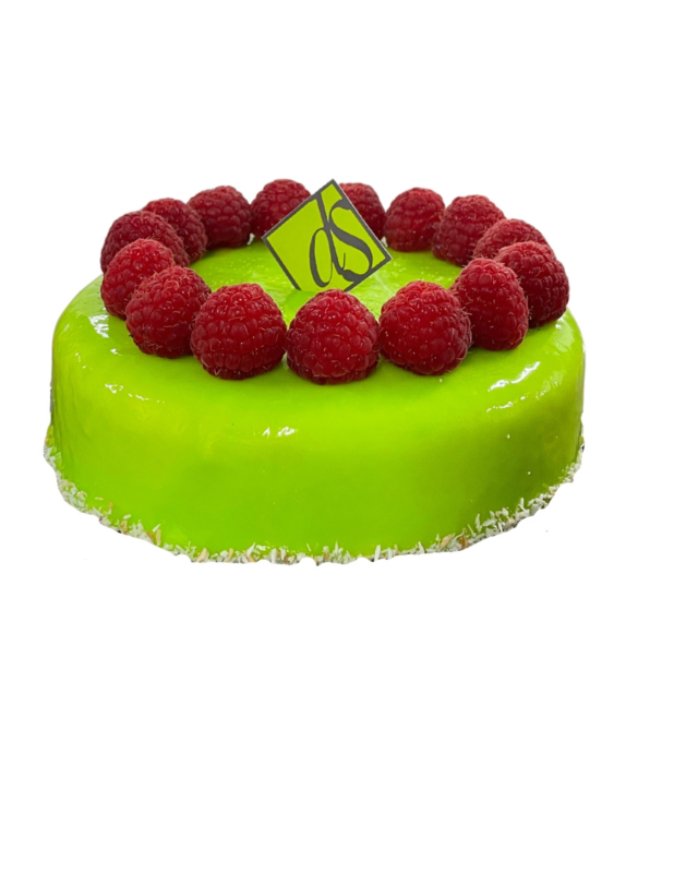 Sablé croustillant, mousse légère au citron vert, biscuit grand-mère, crémeux framboises