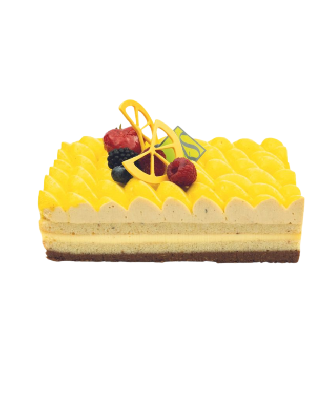 Mousse aux noisettes, croustillant noisettes IGP du Piémont, financier amandes, crémeux citron